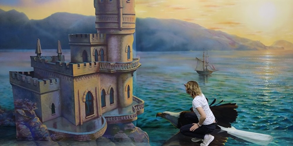 "Галерея иллюзий" – впечатляющее сооружение, расположенное на центральной набережной Алушты, по праву считается крупнейшим арт-объектом на юге России. Галерея занимает площадь в 630 квадратных метров, а её фасад украшен живописными полотнами протяженностью два километра.